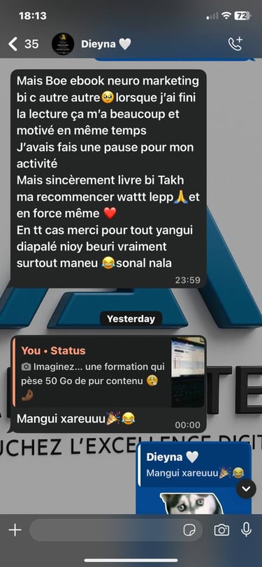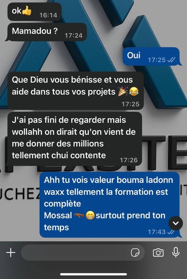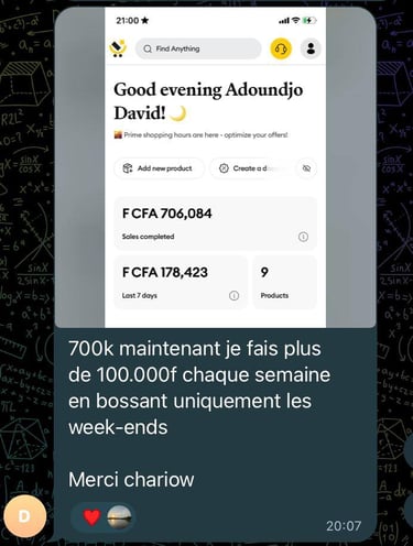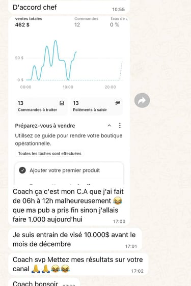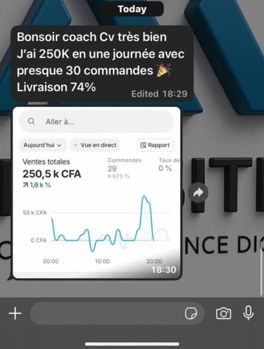 Nous vous guidons pas à pas pour lancer votre business en ligne, avec support direct via WhatsApp, conseils personnalisés et accès à une communauté privée. Tout est pensé pour vous faire passer rapidement de l’idée à l’action avec des résultats concrets